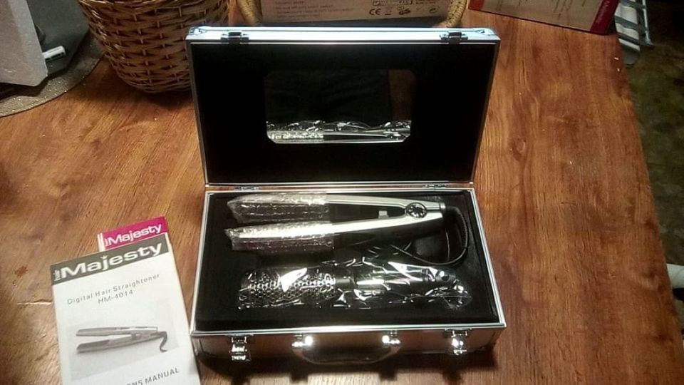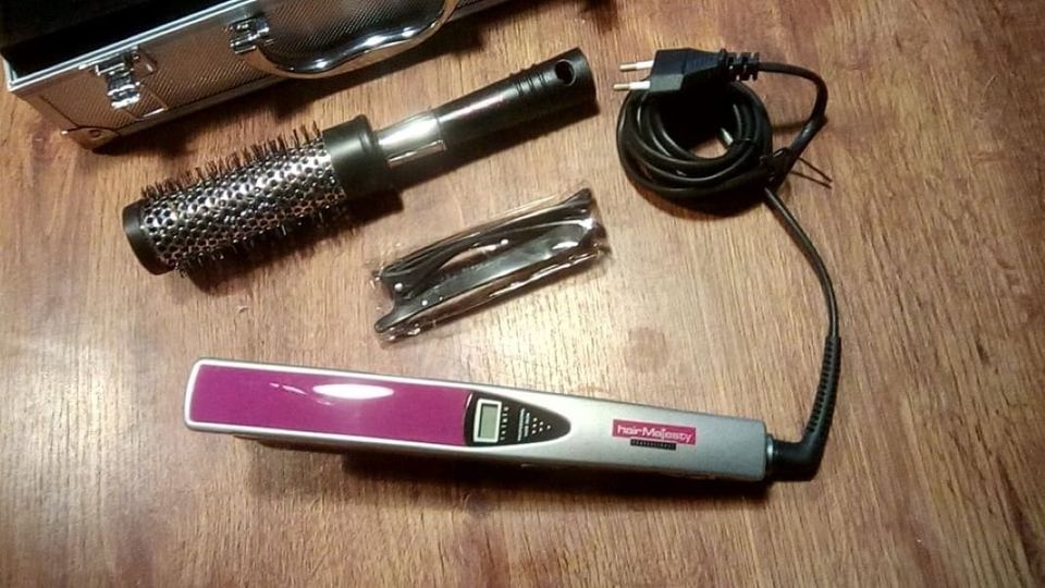 žehlička na vlasy Hair Majesty ceramic professional 90w, 140-200C stupňů s alu kufříkem, 2x spona + kartáč na vlasy...nebo bez kartače a kufříku za 200,-kč