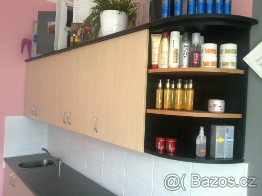 Prodám kompletní nepoškozenou sestavu skříní, která nová stála 35 000 kč. Kuchynka cca dva roky používaná v kadeřnickém salonu, včetně dřezu a vodovodní baterie. Délka sestavy je dlouhá 2,52 m, šířka spodních skříní je 0,5 m a šířka vrchních skříněk je 0,3 m. Pěkný a nepoškozený nábytek. Nyní za komplet 5000 kč