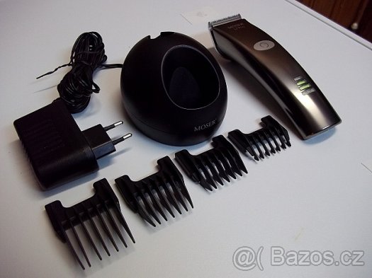 S příslušenstvím viz. foto: Nabíječka. 4 nástavce: 3, 9, 12, 18 mm.Made in Germany. Profesionální strojek MOSER špičkové kvality. S vlastním lithiovým akumulátorem s velmi rychlým nabíjením (pouze 45 min.) bez paměťového efektu a až 75 min. bezkabelového provozu. Velmi silný motorek s mikroprocesorem řídící konstantní rychlost. Ukazuje stav nabíjení a kapacitu strojku, kontrolka signalizuje potřebu olejování hlavice. Střihací hlavice MAGIC Blade II - zesílená konstrukce, lehce snímatelná s nastavitelnou výškou střihu. Super lehký (pouze 265 g) a velmi tichý.Plně funkční. Předvedu.Možno dovézt nebo zaslat.