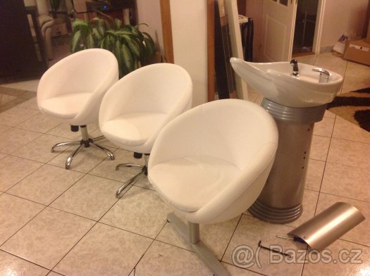 Nabízím k prodeji kompletní vybavení do kadeřnickéhosalonu. Komplet obsahuje:1x recepce,2x kadeřnické křeslo,1x kadeřnická obsluha se zrcadlem,1x mycí box,1x dětská židle na stříhání,1x pojízdný vozík, 1x podnožník, 1x velký osvětlený stojan,1x malý stojan,1x malá kuchyňská linka na přípravu materiálu,polička,2x křeslo a konferenční stolek. Vše barevně laděné.